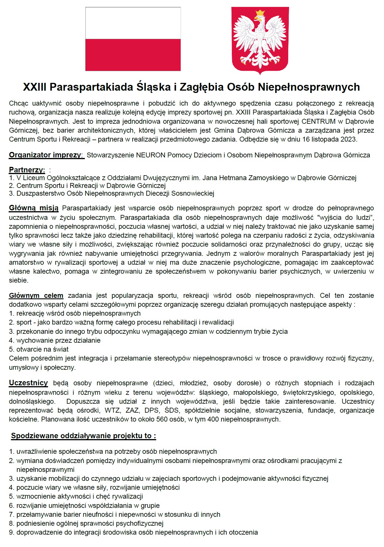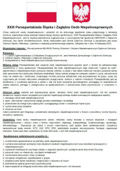 - XXIII Paraspartakiada Śląska i Zagłębia Osób Niepełnosprawnych - projekt realizowany od września 2023